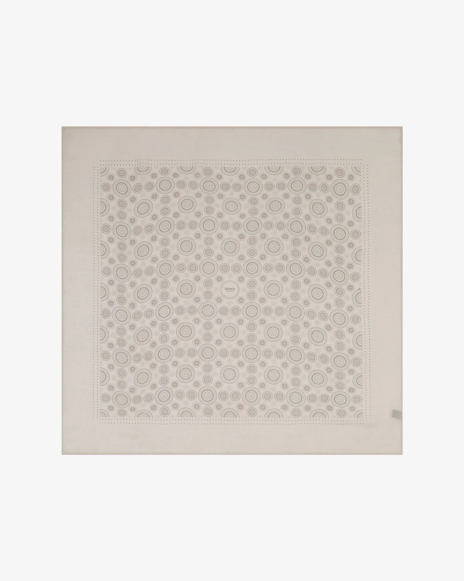 Key attributes of the 'Circles in Cream' bandana include: