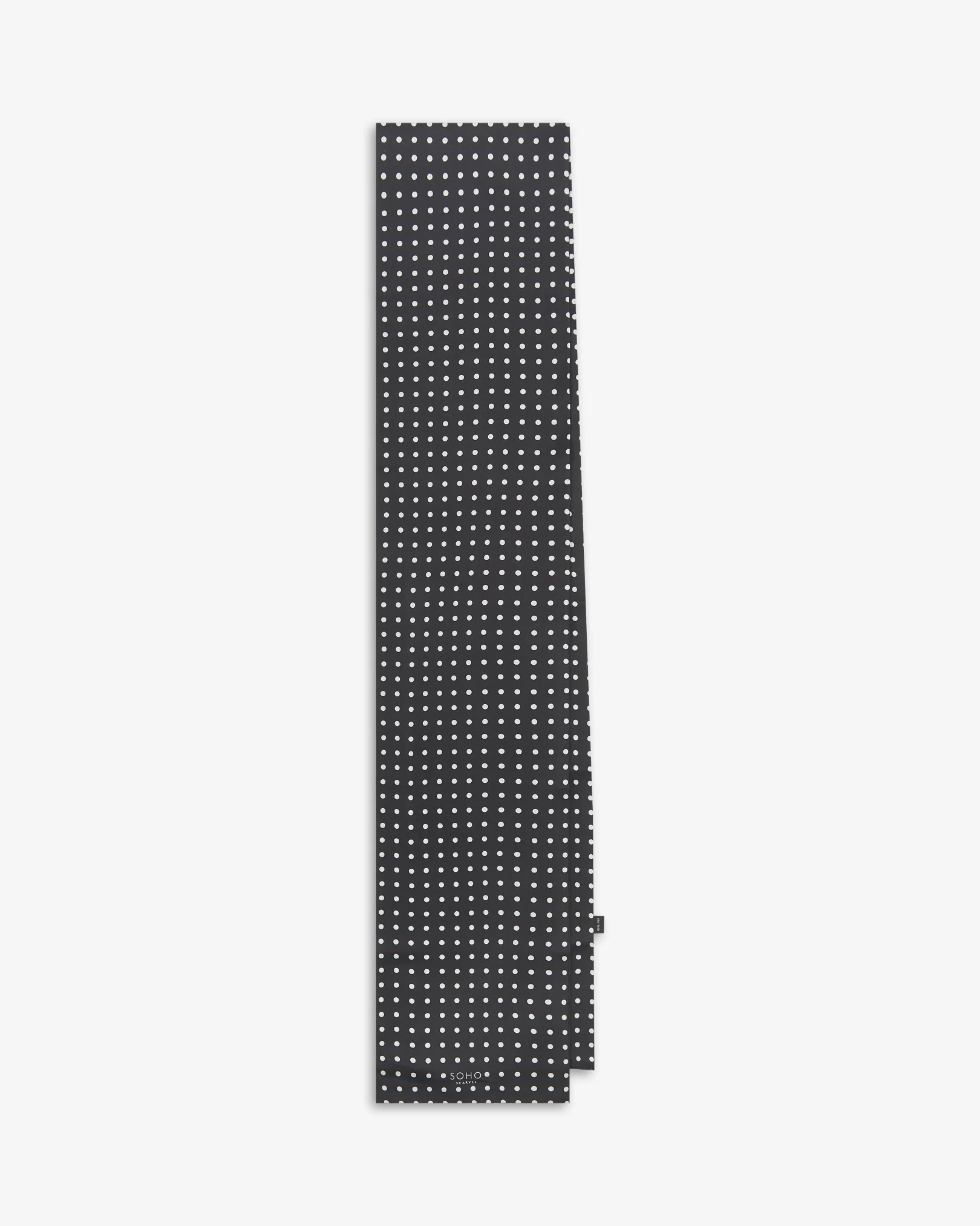 This classic white spotted pattern on a black background works for all occasions and will add a luxurious finishing touch to your outfit. This timeless pattern is the perfect addition to your ensemble if you are looking to elevate your look.